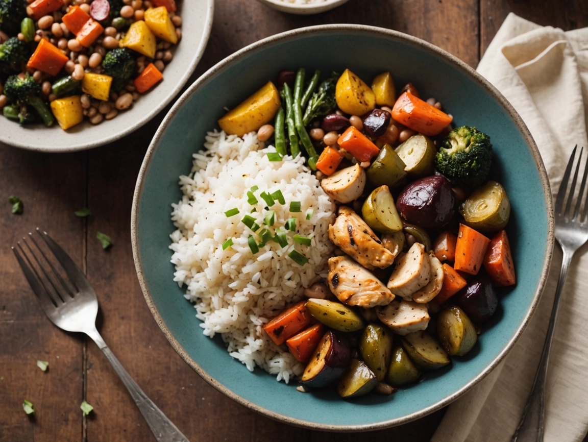 Start with rice → add veggies, beans, leftover chicken, cheese, or whatever you have.
